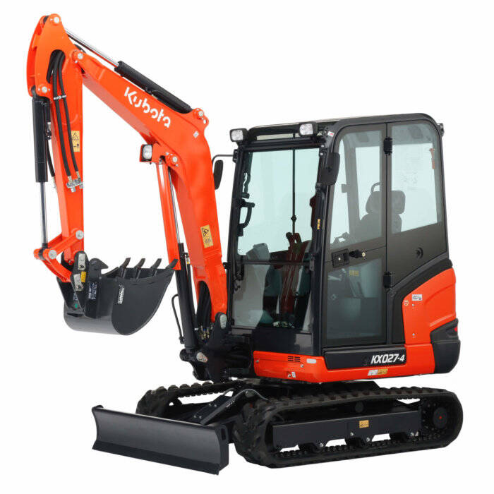 Voor de iets grotere klussen komt deze machine beter tot zijn recht. Met een breedte van 1400mm en een gewicht van 2,7 ton is hij gemakkelijk te transporteren op een autoaanhanger. De Kubota KX027-4 is zeer geschikt voor vele klussen. Hij is voorzien van twee extra hydraulische functies waardoor ook een sorteergrijper er aankan. Deze machine word geleverd met drie bakken. Een brede volume bak, een dieplepel en een banaanbakje.